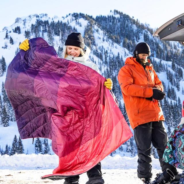 Plastic bottles recycled per blanket: 16 (Junior size), 60 (1-Person size) or 100 (2-Person size), 100% post-consumer recycled polyester shell and insulation, DWR finish for stain and water resistance, Cape Clip (1-Person size only) for hands-free use, Corner loops, Machine washable, Water-resistant stuff sack included.